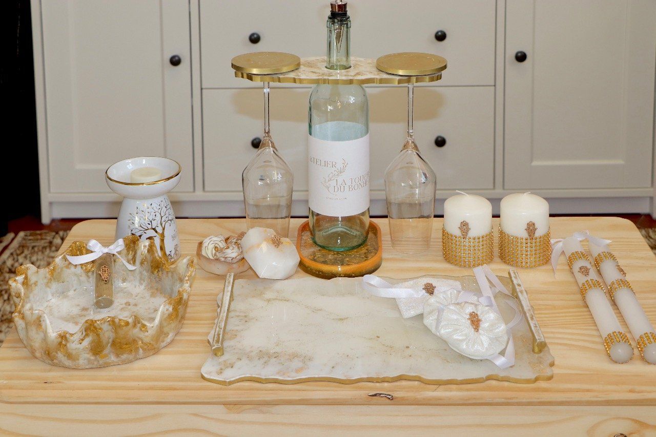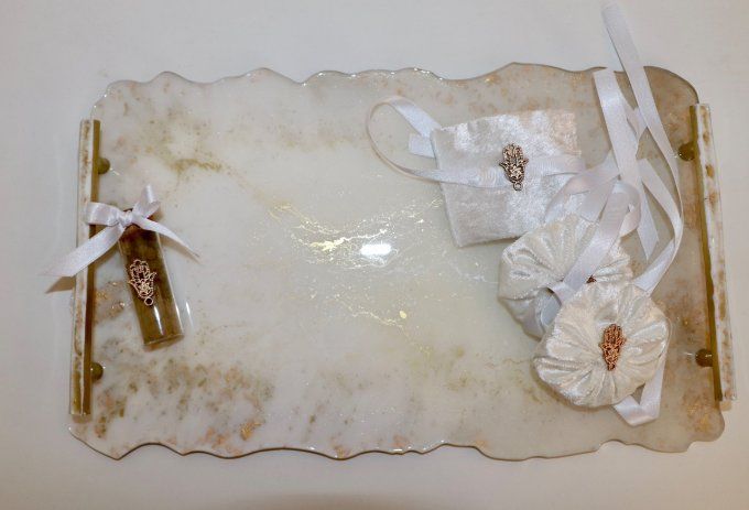 Vous pouvez personnaliser le plateau avec les prénoms du couple ou un texte ou logo (sous réserve de faisabilité). (Option : +10€).